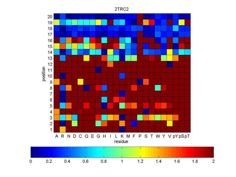 FoldX Results FoldX results for ADAN record 2TRC2.PDB A) Color code: matrix interpretation with